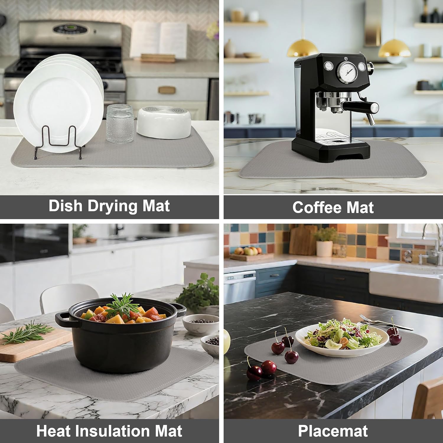 - Stylish, Gentle, and Durable Dish Mats for Drying Dishes: The modern gray color matches any decor, while the soft microfiber surface is gentle on fragile dishware. These dish mat drying kitchen mat options are both attractive and practical, making them ideal for everyday use or entertaining