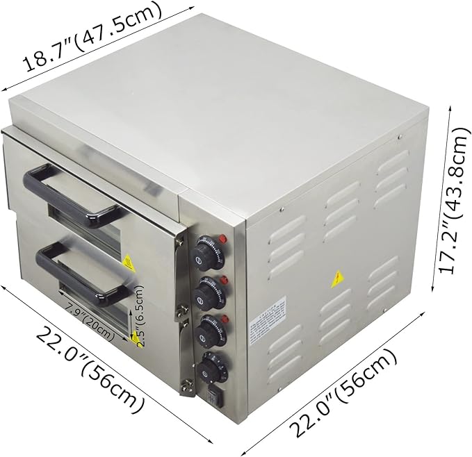 Commercial Pizza Oven, 220V 3KW Commercial Double-decker Pizza Electric Oven Stainless Steel 2-Layers Pizza Cooker