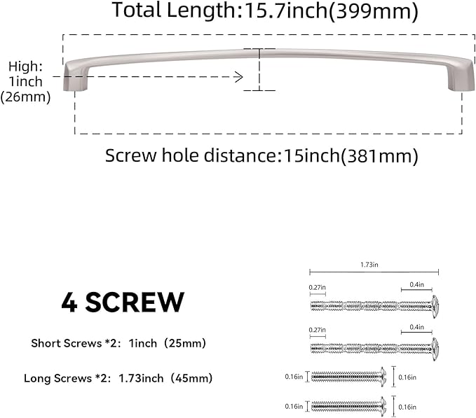 10 Pack 15 Inch(381mm) Kitchen Cabinet Handles Brushed Satin Nickel Cabinet Pulls Silvery Drawer Pulls Zinc Alloy Kitchen Hardware