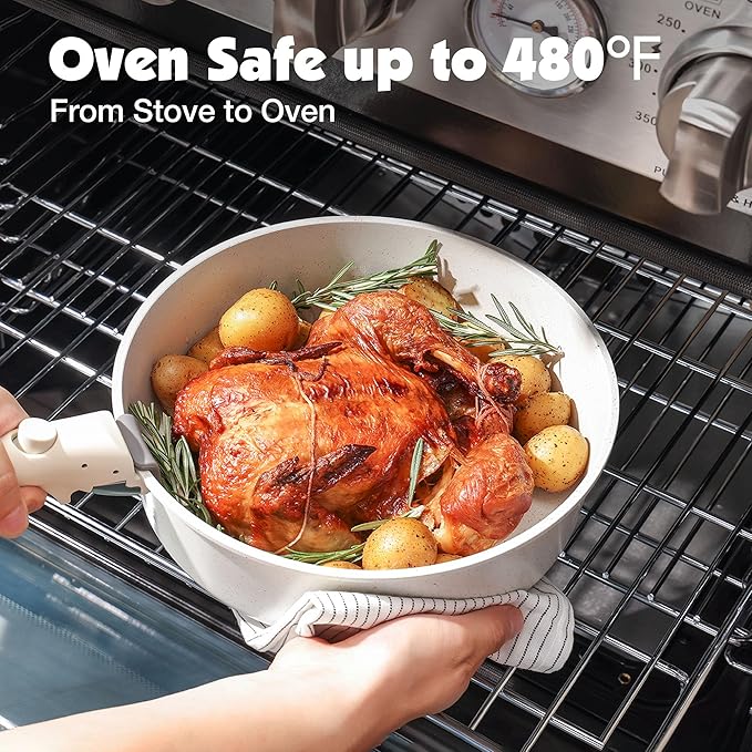 SENSARTE 13 Piece Pots and Pans Set, Nonstick Detachable Handle Cookware, Induction Kitchen Cookware Set with Removable Handle, Healthy Non Stick for RV, Dishwasher & Oven Safe (White)