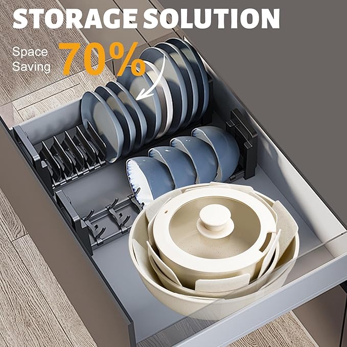 - Efficient Storage: The pots and pans set comes with removable handles and can be stacked for storage, optimizing 70% of storage space and providing a healthy cooking environment. Easy to store in a cabinet or RV and very convenient to carry