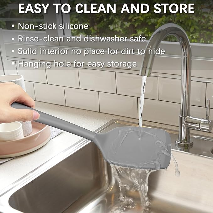- [Easy to Clean & Store]: Non-stick silicone makes cleaning quick and effortless by hand or in the dishwasher; these turner spatulas include a hanging hole for convenient storage, helping save space in your kitchen