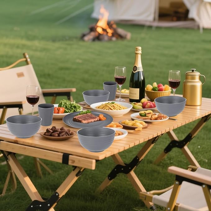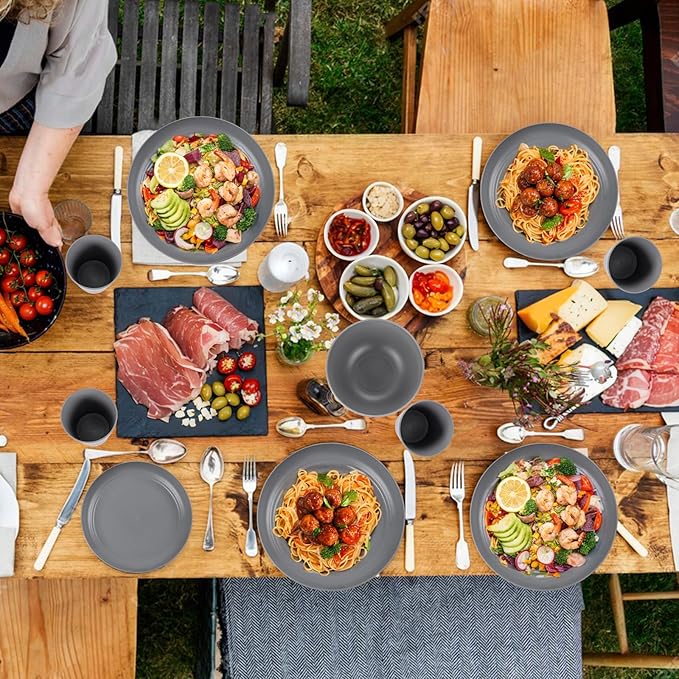 - Package Contents:Dark gray wheat straw dinnerware sets can serve 6 guests.The unique color will bring you and your family and friends a different usage experience,and plate sets will become the eye-catching presence on the dining table.