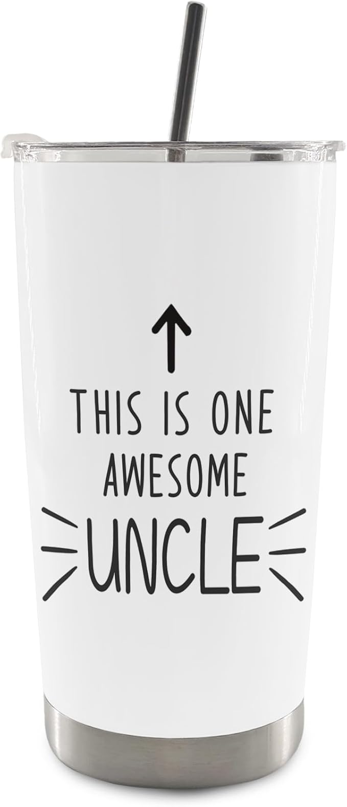 QASHWEY Uncle Gifts Coffee Tumbler 20 oz, BestUncle Travel Tumbler Coffee Mug Gifts for Uncles, UncleGifts from Niece Nephew, This is One Awesome Uncle Stainless Steel Tumblers with Straw and Lid