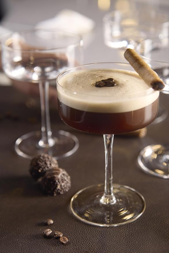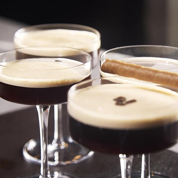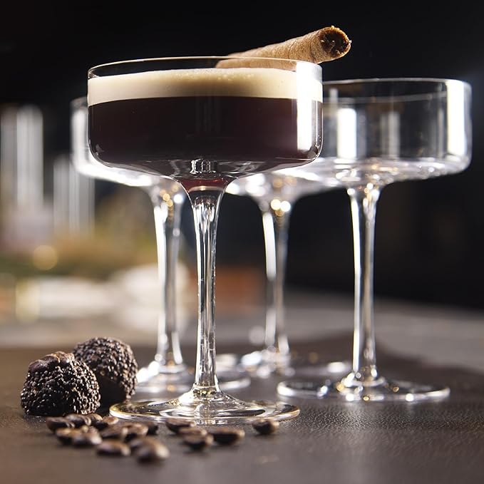 - HIGH-QUALITY GLASS: Crafted from premium glass, these espresso martini glasses provide exceptional clarity and brilliance. Their fine craftsmanship and delicate design elevate each sip, making them a must-have for cocktail enthusiasts.