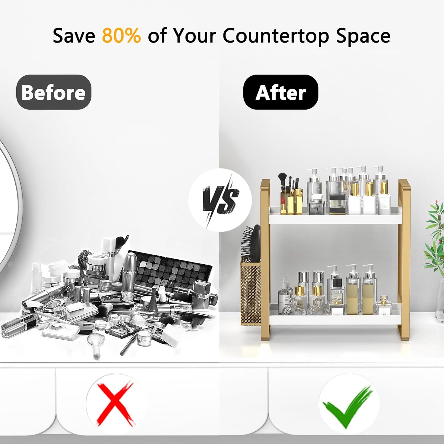 - 【Multi-functional Countertop Organizer】The spice organizer is a versatile solution for those who face space constraints in their kitchens, bathrooms, and pantries. It offers twice the storage space and helps keep your essentials organized and easily accessible.