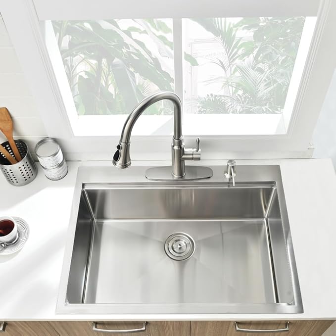 - Sink Construction: The 33x22 drop in kitchen sink is constructed by 16 gauge T-304 stainless steel, added R10 design could let your wiping reach to each corner, easy to clean and long-lasting