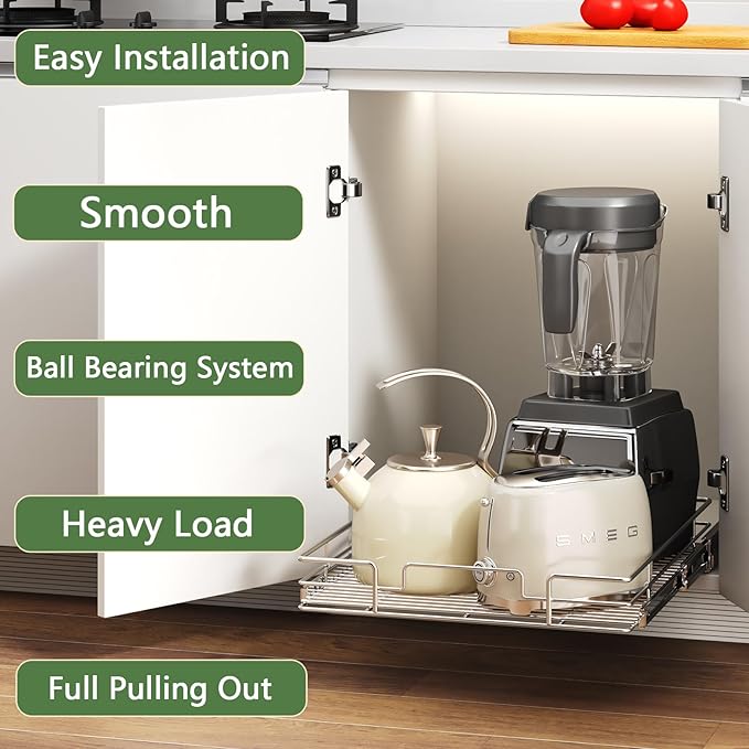 - 【Efficient Kitchen Organizer】Features a full-extension ball-bearing system which slides smoothly; Durable and strong organizer that can hold up to 50-pounds of weight.