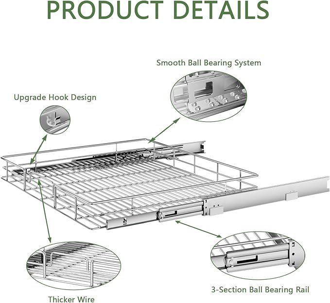 - 【Efficient Kitchen Organizer】Features a full-extension ball-bearing system which slides smoothly; Durable and strong organizer that can hold up to 50-pounds of weight.