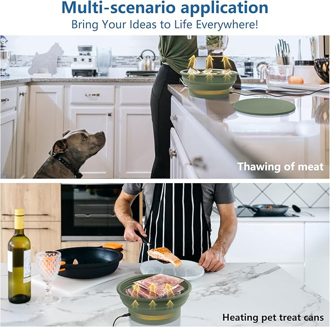 Electric Heating Bread Proofing Basket, Sourdough Starter Warmer - 4 Heat Settings, Foldable 9-Inch Sourdough Starter Kit, Silicone Banneton Basket-Multipurpose for Warming Pet Food, Green