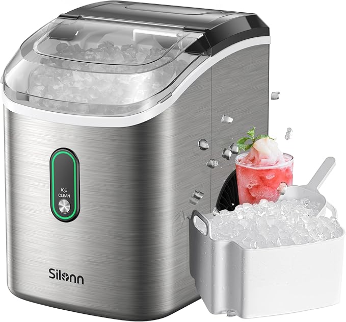 - Rapid Ice Production: Experience lightning-fast ice-making with the Silonn Nugget Ice Maker, capable of producing up to 33 pounds of chewable ice daily. Enjoy your first batch in just 6 minutes, this sonic ice maker significantly quicker than the average 20 minutes of traditional ice makers