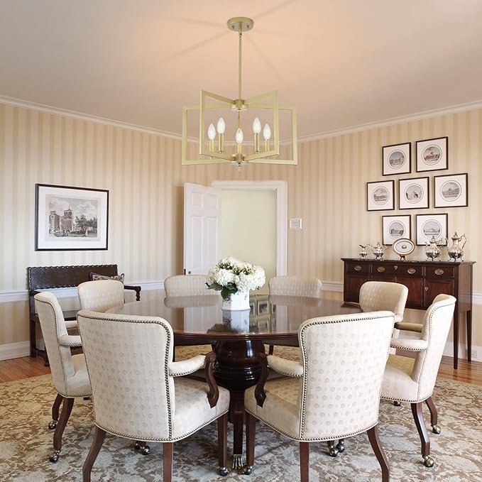 - Style Design:This chandelier lighting for dining room consists of a gold metal frame with a minimalist silhouette, which better balances aesthetics and functionality. The unique appearance gives a stylish and modern look that leaves a lasting impression