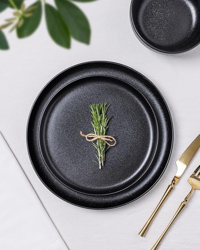 TheTerra Ceramic Dinnerware Sets for 4, 12 Pieces Porcelain Lightweight Plates and Bowls Sets, Scratch Resistant Dish Set, Oven & Microwave & Dishwasher Safe, Black