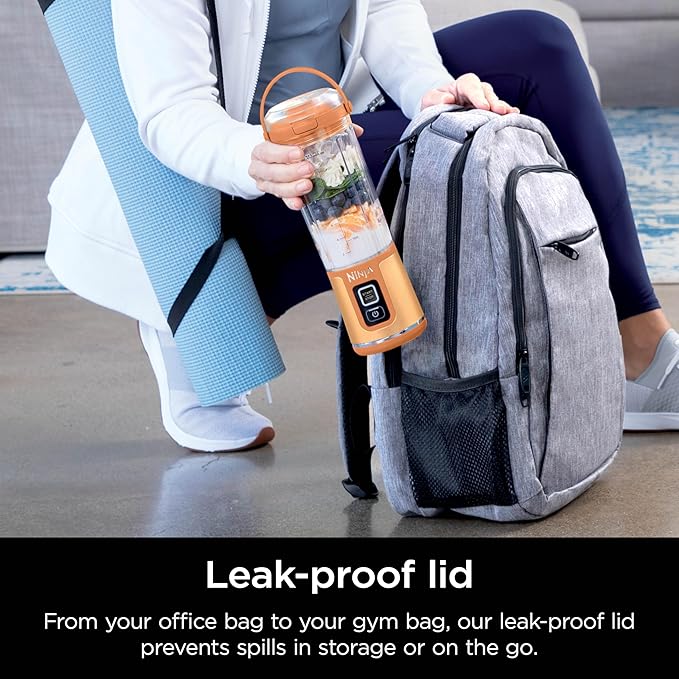 Ninja Blast Portable Blender, Cordless, 18oz. Vessel, Personal Blender for Shakes & Smoothies, BPA Free, Leakproof Lid & Sip Spout, USB-C Rechargeable, Dishwasher Safe Parts, Orange Apricot, BC151AO