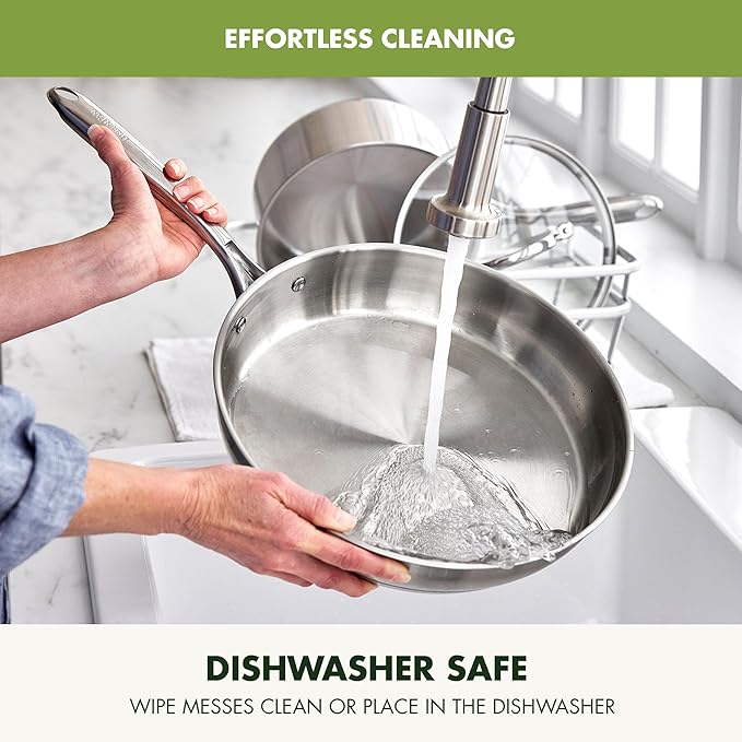 GreenPan11 Piece Stainless Steel Cookware Set, Induction Ready, Measurement Markings, Dishwasher & Oven Safe 600F, Pots & Pans, Sauce, Saute, Frying Pans, Silver