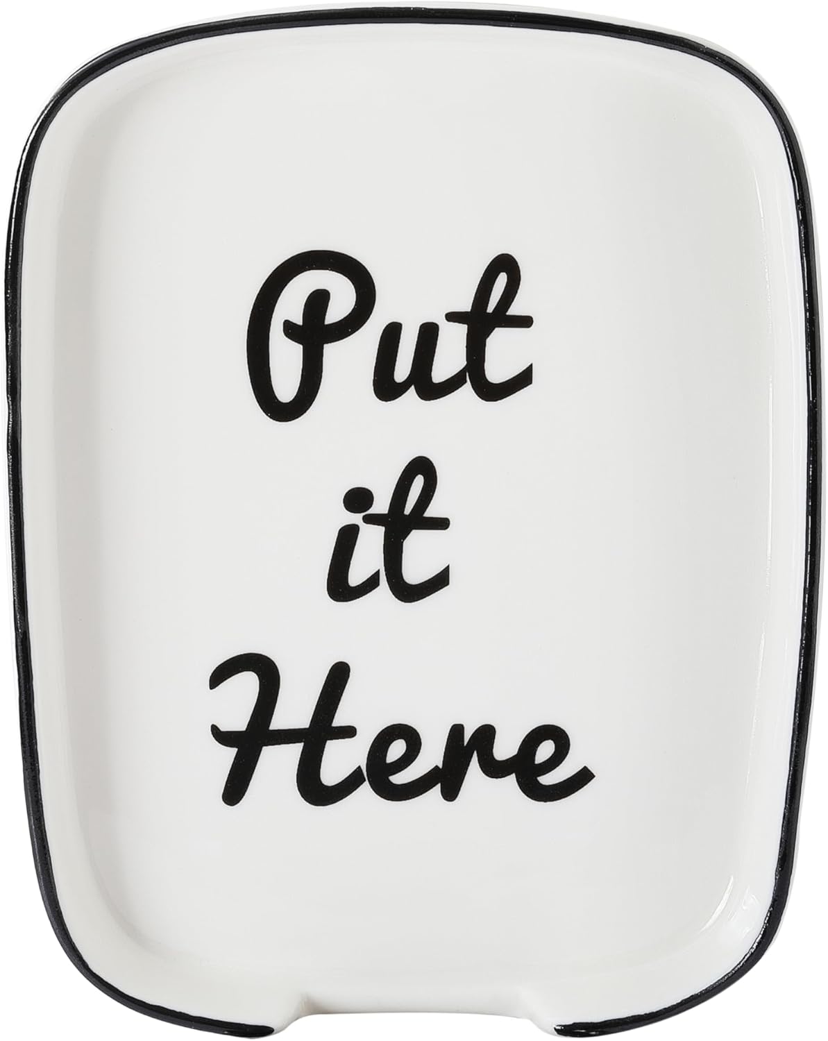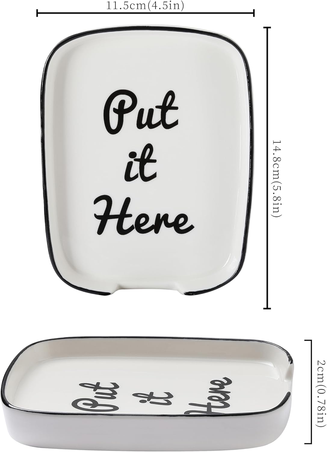 - 2.Cute & Playful Aesthetic: Designed with a sleek white ceramic and a contrasting black frame, this spoon holder brings a modern and stylish look to any kitchen decor.The playful black text “Put it Here”adds a fun and inviting touch, making it not just a practical kitchen tool but also a charming kitchen counter decor that enhances your cooking space.