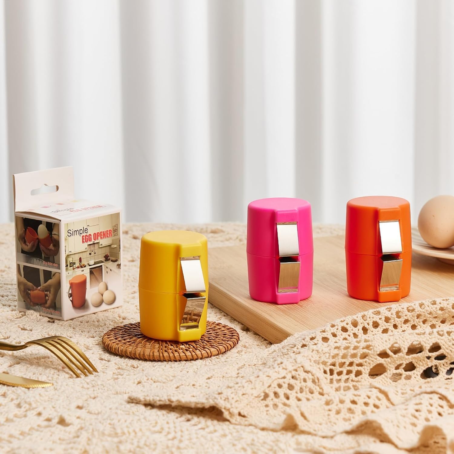 - Take It Anywhere --- Lightweight and portable, this egg cracker is your ideal kitchen aid for outdoor adventures. Easily pack it in your luggage or backpack for hassle-free egg cracking at home, in a hotel, or while camping. Pair it with our egg peeler tool for hard boiled eggs for the ultimate kitchen and dining experience