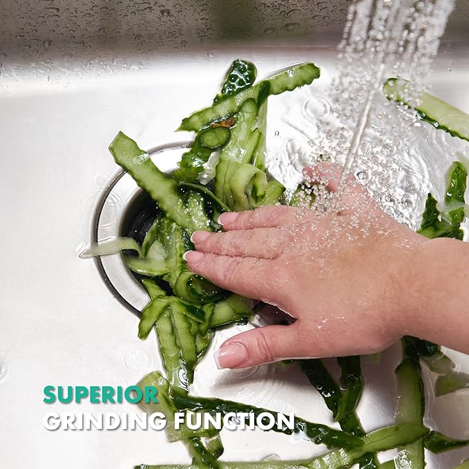 - Efficient Grinding: The robust 1/2 HP motor skillfully processes daily food waste, transforming scraps into fine particles that effortlessly flow through your plumbing. This efficient grinding not only helps maintain a cleaner kitchen by minimizing mess and odors but also promotes a more sustainable environment by reducing the volume of waste sent to landfills. Enjoy peace of mind knowing that your kitchen waste is being managed effectively and hygienically.