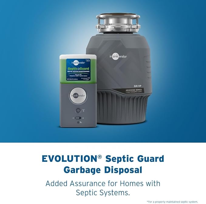 InSinkErator Evolution Septic Guard 3/4 HP Garbage Disposal, Advanced Series EZ Connect Continuous Feed Food Waste Disposer BOOST System with Septic Guard