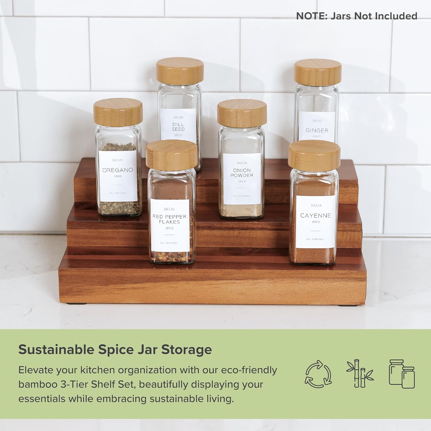 - Perfectly Tiered Design: Three spacious tiers provide ample room to display your favorite spices, jars, or pantry essentials, making this acacia wood spice rack the ideal organizer for cabinet or countertop use