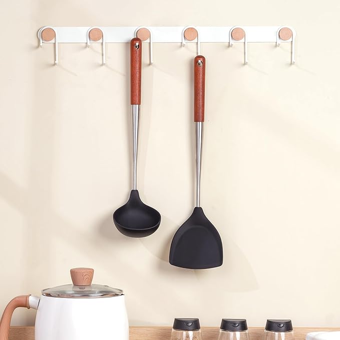 - 3 in 1 cooking utensils: Wooden handle, 304 stainless steel, silicone 3 in 1. Wooden handle has better grip, stainless steel frame is more durable, silicone doesn't hurt your pans, the production process is more complicated, but it's worth it!