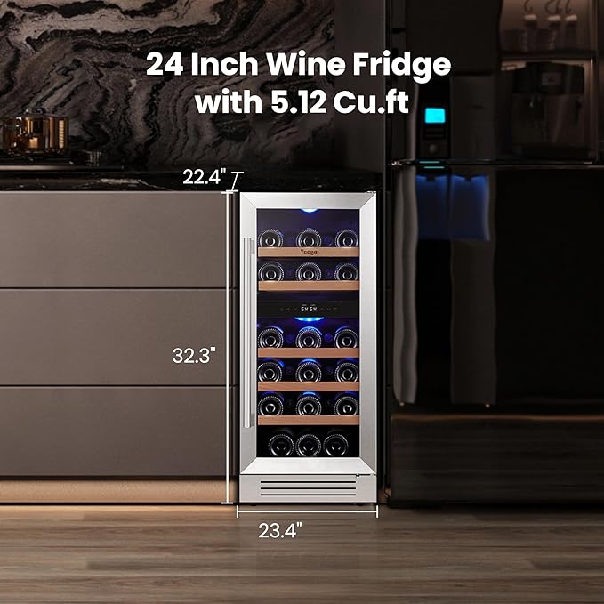 - 【ADVANCED COMPRESSOR & LOW NOISE & ANTI-VIBRATION】This wine fridge uses an advanced compressor to cool your wines evenly without disturbing the sediment. The no-vibration design helps preserve the rich flavor and taste of your wine. Enjoy quiet, fast, and efficient cooling—perfect for both families and wine lovers.