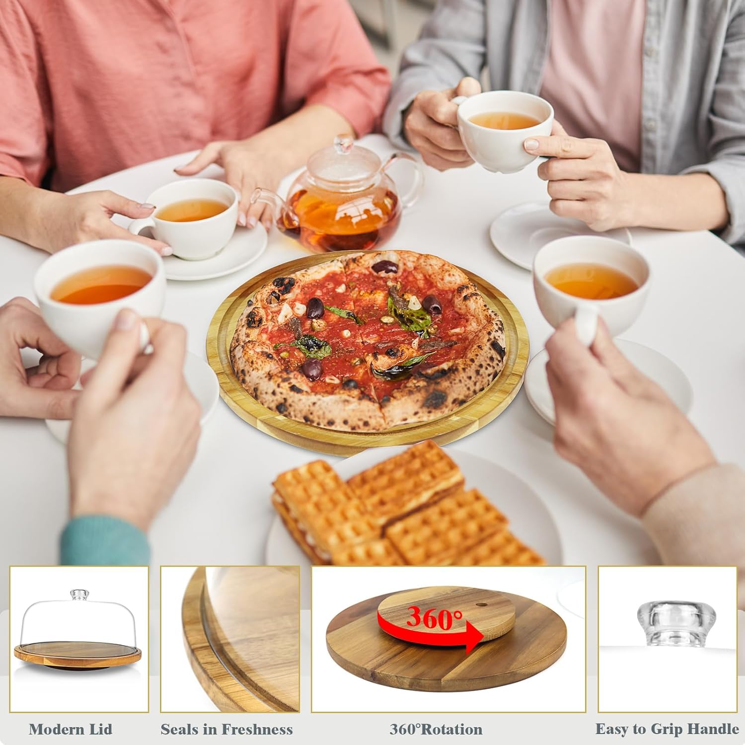 cutesun Wood Cake Stand with Lid, 12in Acacia Wood Cake Plate with Cover, Wooden Cake Display Stand with Acrylic Dome, Cake Holder Tray for Wedding Gift,Kitchen,Birthday,Parties,Baking Gifts