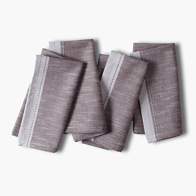 Ramanta Home Cloth Napkins Set of 4 Textured Cotton 18x18 - Premium Contrast Border Fall Thanksgiving Dinner Napkins for Christmas Farmhouse Wedding, Soft Washable Table Linen for Everyday Use - Brown