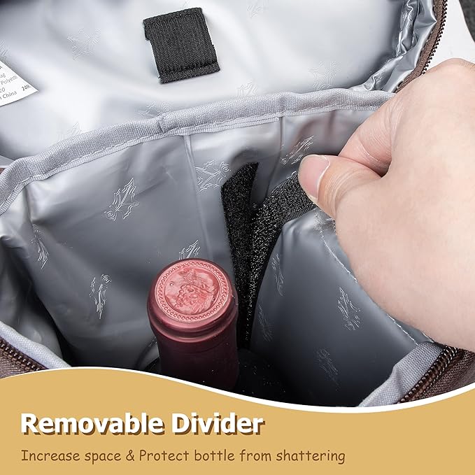 - PROTECT YOUR WINE-The interior padded divider of this bottle cooler bag keeps your bottles safe and prevents them from clashing, while also allowing it to be used as a wine cooler or insulated bag for water and beverages. Whether on a cruise, beach trip, or just traveling, this wine carrier will keep your drinks secure.
