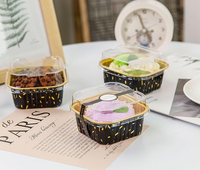 - Share Delicious Delights: Whether at parties, baking and cooking occasions or party, picnic, holiday events, these foil cupcake liners with lids can easily hold mini cakes, helping you share delicious treats effortlessly, adding fun to the event, while also highlighting your taste and emphasis on quality
