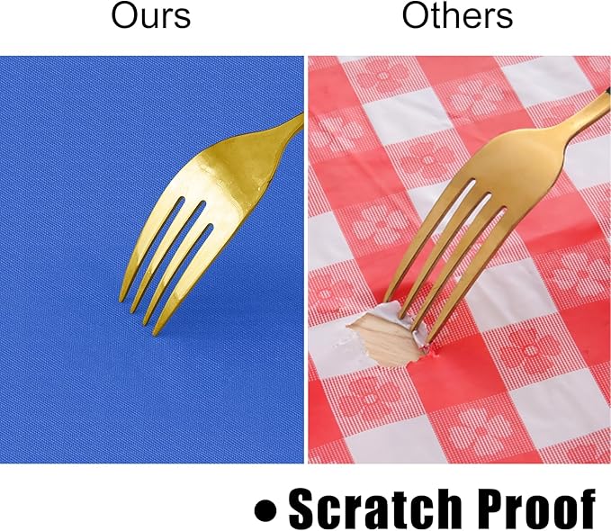 - [Sturdy & Functional] The surface of our tablecloth features premium vinyl material, which makes it more sturdy and protects your table from everyday wear and tear, and tableware scratches
