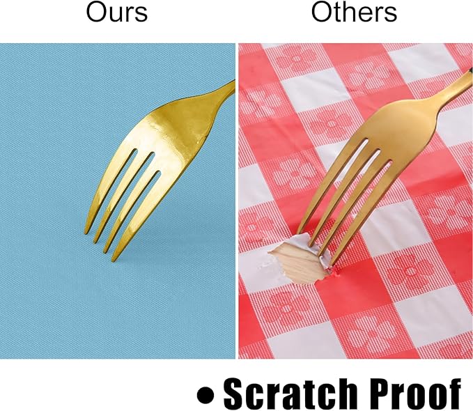 - [Sturdy & Functional] The surface of our tablecloth features premium vinyl material, which makes it more sturdy and protects your table from everyday wear and tear, and tableware scratches