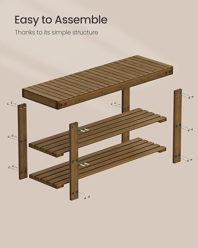 - 【EASY TO ASSEMBLE】With a simple structure and clear instructions, this shoe rack bench can be assembled in just a few minutes. Enjoy your new shoe rack right away!