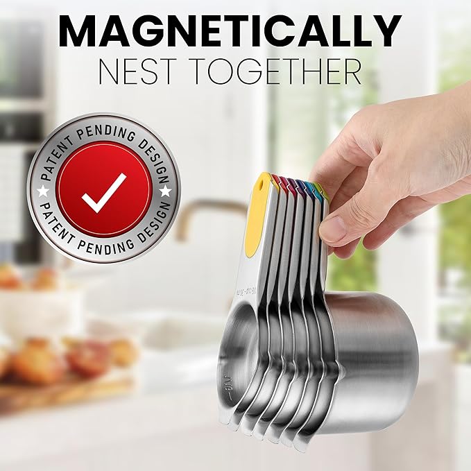 Spring Chef Magnetic Stainless Steel Measuring Cups, Patented, Kitchen Tools with Easy to Read Markings for Measuring Dry or Liquid Ingredients, Set of 7, Multicolor