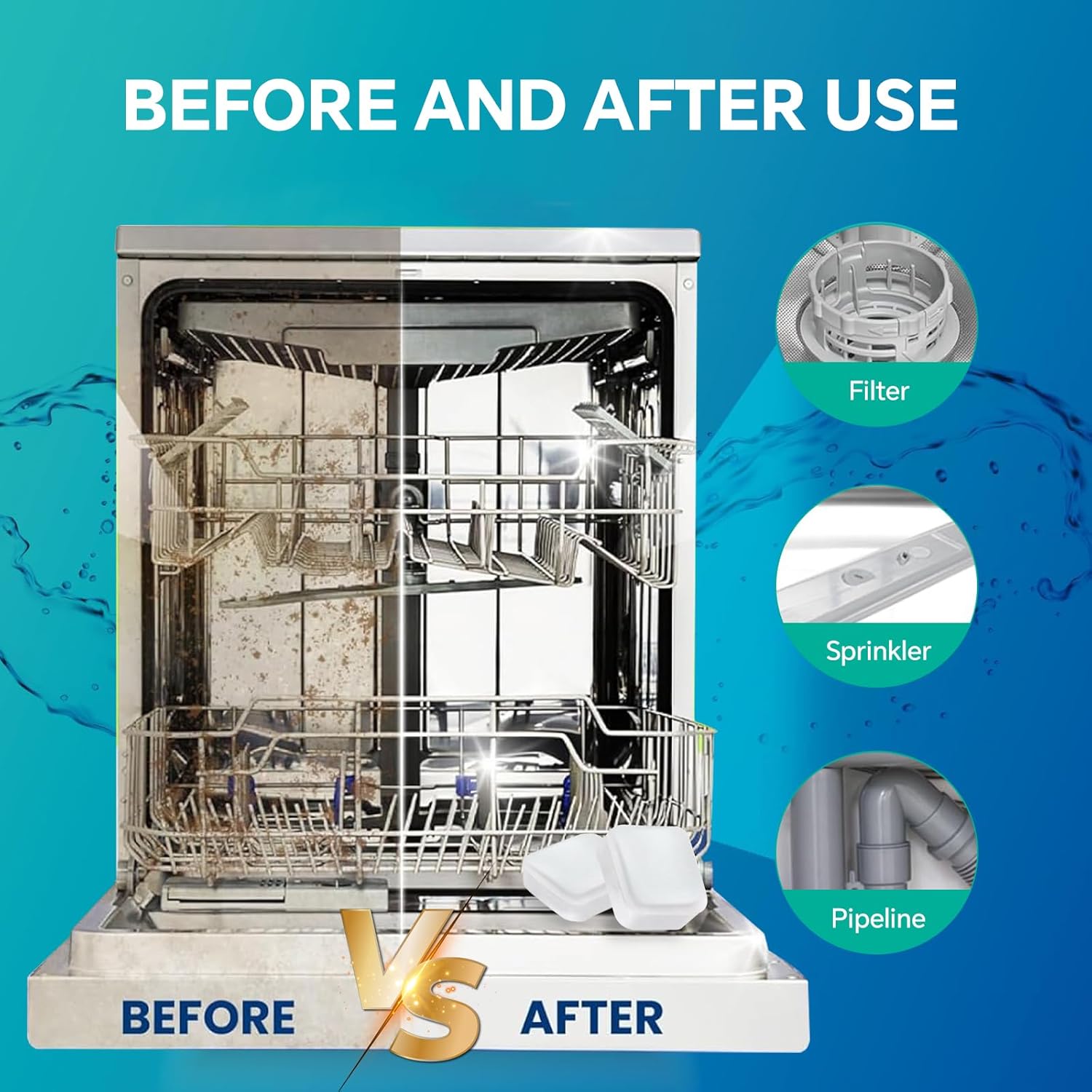 - Powerful Cleaning Performance: OrientLeaf dish washer cleaner tablets tackle limescale, hard water stains, grease, and grime. Keep your dishwasher running smoothly while helping to prevent clogs in pipes and filters