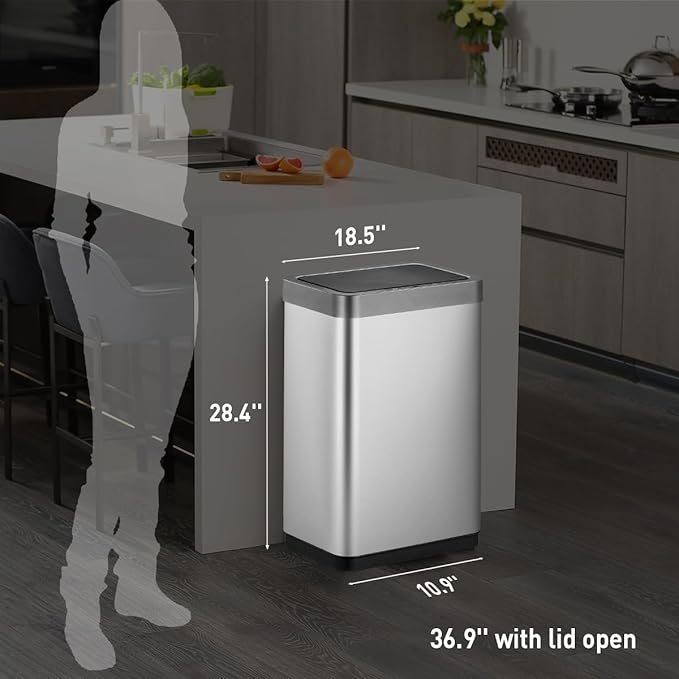- Experience the smoothest, most seamless lid opening and closing technology with this EKO hands-free automatic trash can.