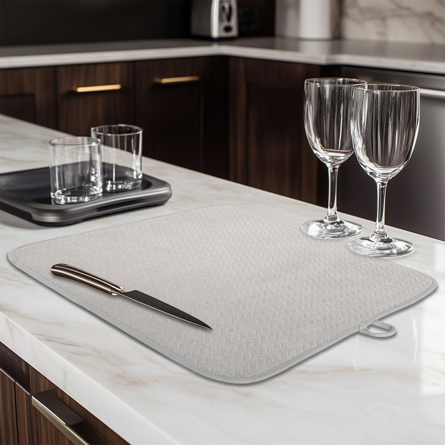 - Versatile & Practical: This dish drying mat is more than just a drying surface – it works as a dish drainer mat, countertop protector, and an all-in-one solution for drying dishes and cookware