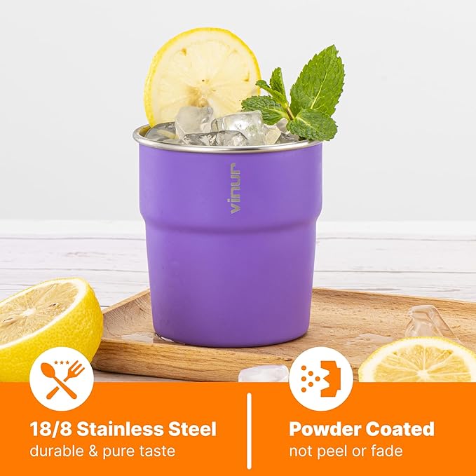 VINUR 8 oz Stainless Steel Cups 4 Pack Tumbler Stackable Metal Drinking Glasses for Travel, Camping, Outdoors (Canyon Red-Sky Blue-Purple-Navy)