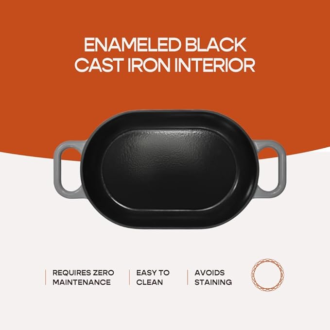- PREMIUM CONSTRUCTION: Crafted with triple-layered enameled cast iron, this loaf pan dutch oven combines superior heat distribution with lasting durability. The cast iron dutch oven premium enamel coating prevents sticking while maintaining consistent temperatures throughout the baking process. The oval dutch oven pot with lid shape and carefully calculated dimensions provides optimal space for dough expansion and crust formation.