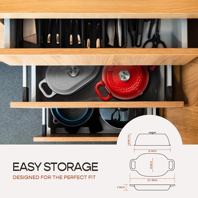 - ELEGANT DESIGN: The oval dutch oven pot showcases a stunning metallic gradient finish that seamlessly blends elegance with functionality. The dutch oven for sourdough bread baking enamel interior enhances heat retention while simplifying cleanup, and the ergonomic handles provide comfortable lifting. The sophisticated design makes cast iron dutch oven with lid a stunning addition to any kitchen.