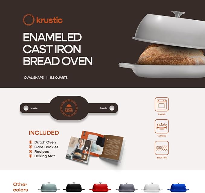 - PERFECT BAKING: Krustic professional dutch oven for bread baking features an innovative dome design that creates optimal steam circulation, helping your sourdough to achieve the perfect rise and golden crust every time. The specially engineered with 5.5-quart capacity and precise temperature control make this cast iron cookware essential for both novice bakers and seasoned professionals.