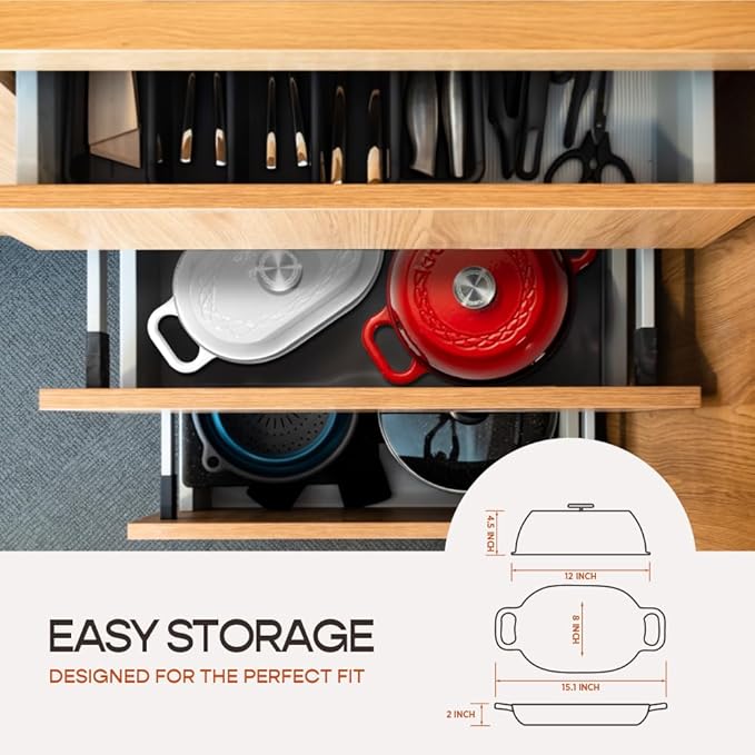 - PREMIUM CONSTRUCTION: Crafted with triple-layered enameled cast iron, this loaf pan dutch oven combines superior heat distribution with lasting durability. The cast iron dutch oven premium enamel coating prevents sticking while maintaining consistent temperatures throughout the baking process. The oval dutch oven pot with lid shape and carefully calculated dimensions provides optimal space for dough expansion and crust formation.