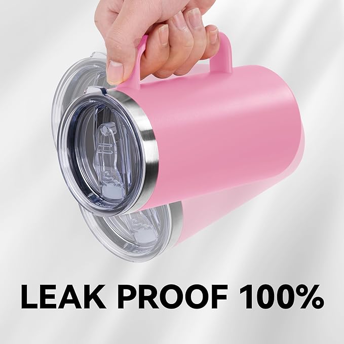 DOMICARE 24oz Mug with Handle and Lid, Stainless Steel Coffee Mug, Reusable Insulated Cup, Travel Mug with Handle, Double Wall Vacuum Coffee Tumbler for Men and Women, Pink, Pack 1