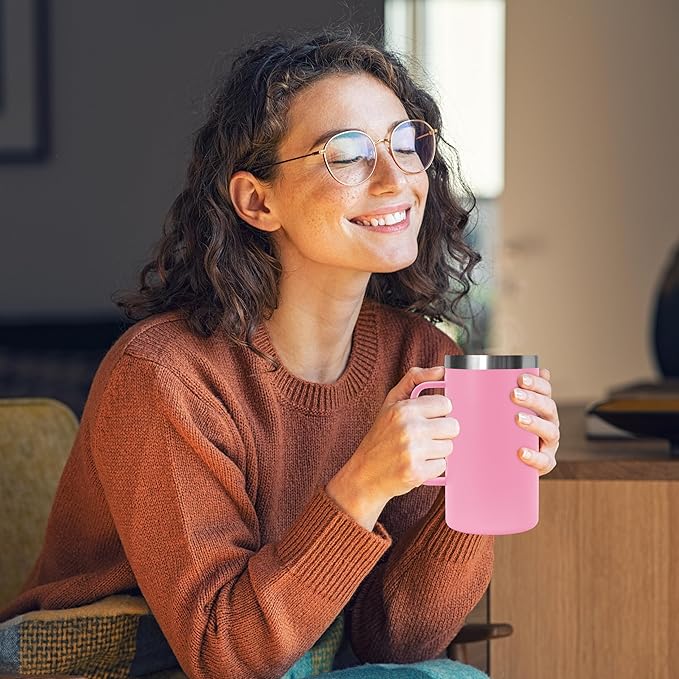 - 24oz Insulated Coffee Mug with Handle: This insulated 24oz mug with handle is made of high quality stainless steel, double-wall vacuum insulation, keeps your drinks at the perfect temperature for hours, whether it's piping hot or refreshingly cold.