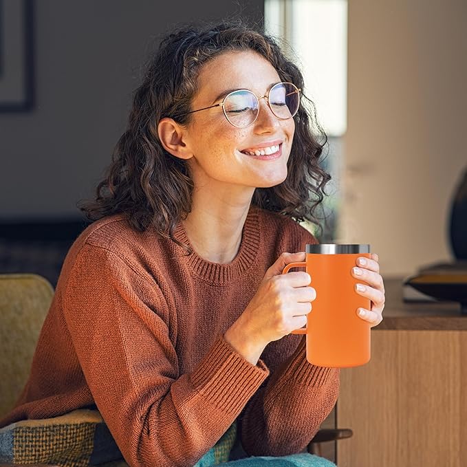 - 24oz Insulated Coffee Mug with Handle: This insulated 24oz mug with handle is made of high quality stainless steel, double-wall vacuum insulation, keeps your drinks at the perfect temperature for hours, whether it's piping hot or refreshingly cold.