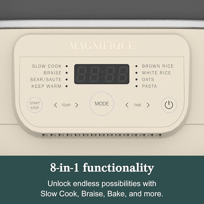 - 8 POWERFUL ONE-TOUCH PRESETS: Slow Cook, Braise, Sear/Sauté, Keep Warm, Brown Rice, White Rice, Oats, Pasta – get every meal covered with the touch of a button