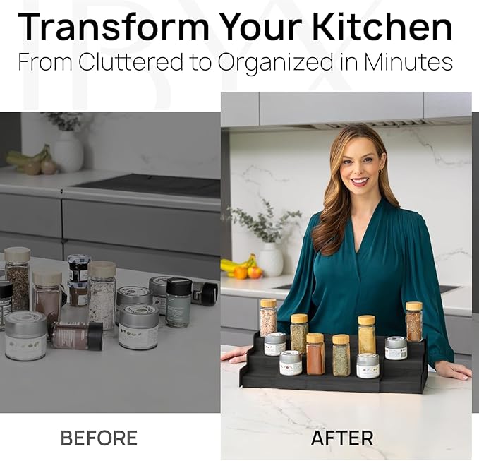 - šššššš & š ššššššššš - This 3-Tiered Spice Rack Organizer helps you maximize your cabinet & countertop storage. Two raised sides effectively prevent jars and containers from tipping over. Keep your spices organized & easily accessible without taking up too much space. A must-have for any kitchen!