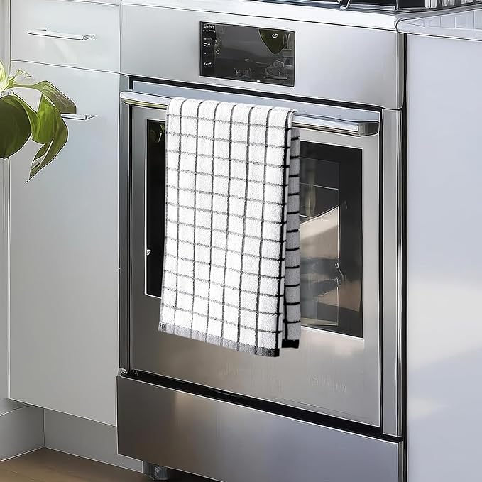 Homaxy Premium Cotton Kitchen Towels 16"x 28", Large Natural Ring Spun 390 GSM Dish Towels, Super Absorbent Terry Kitchen Hand Towels, Soft Tea Towel with Hanging Loop, Black Check Design, 6 Pack