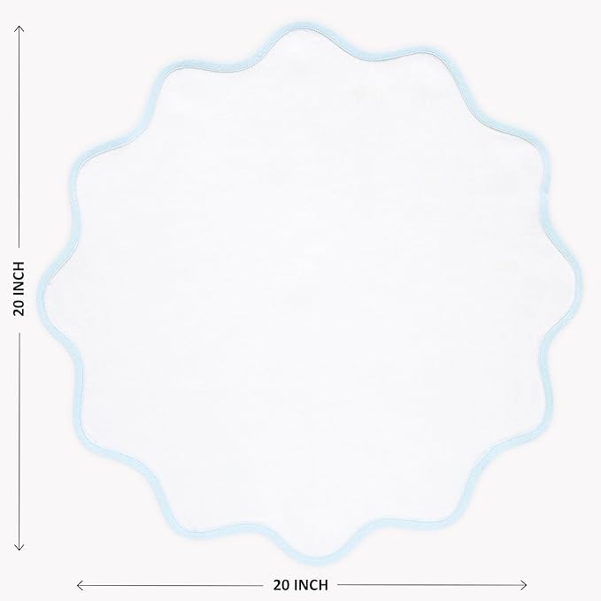 Solino Home Linen Scallop Cloth Napkins Set of 4-100% Pure Linen Ice Water and White Dinner Napkins 20 Inch for Christmas - Giselle Scallop Edge, Handcrafted and Machine Washable