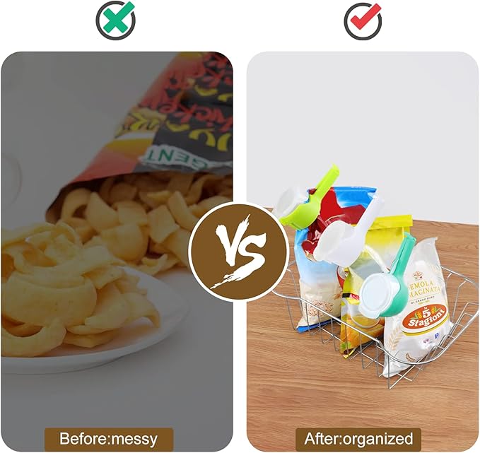 - Versatile Clips: Set of 6 reusable plastic clips with pour spouts for sealing and storing food bags, snacks, pet food, and more.